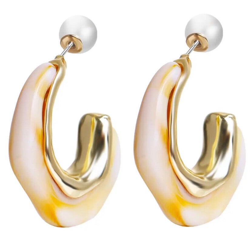 Oorbellen U vorm gekleurde resin met parel achterkant