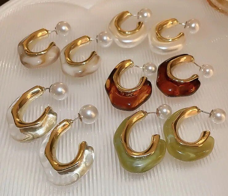 Oorbellen U vorm gekleurde resin met parel achterkant