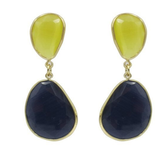 Oorbellen Like! Jewellery - donkerblauw met geel en goud