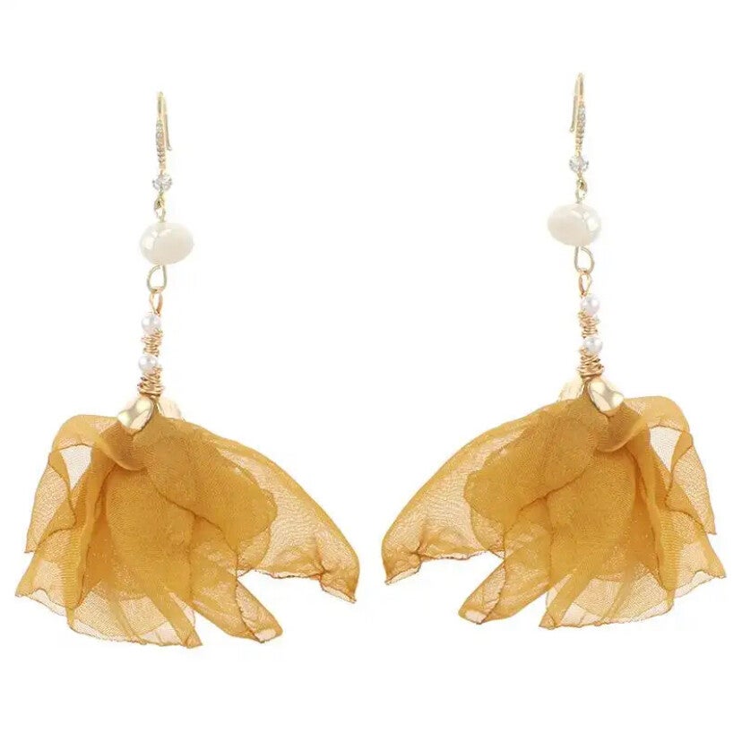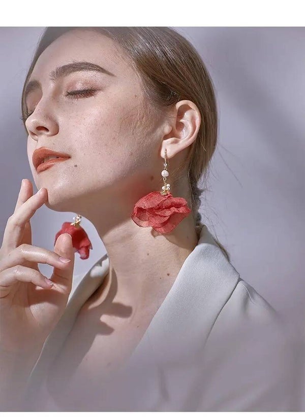 OORBELLEN STATEMENT HANDGEMAAKT MET STOF, PARELTJES EN KRISTALEN