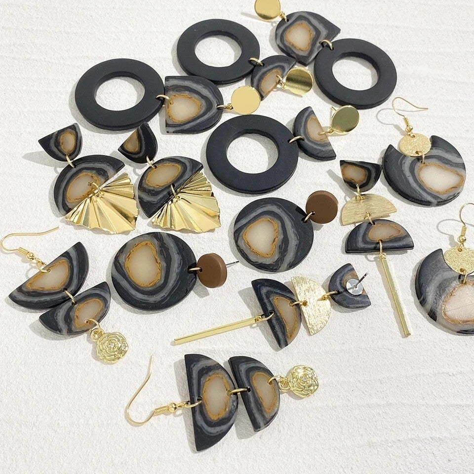 Elegance - lichtgewicht handgemaakte polymer klei oorbellen goud of zilverplated