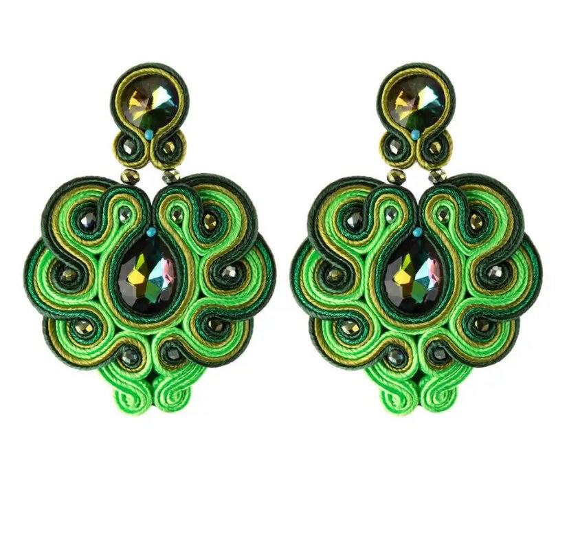 OORBELLEN STATEMENT HANDGEMAAKT MET STOF EN KRISTALEN