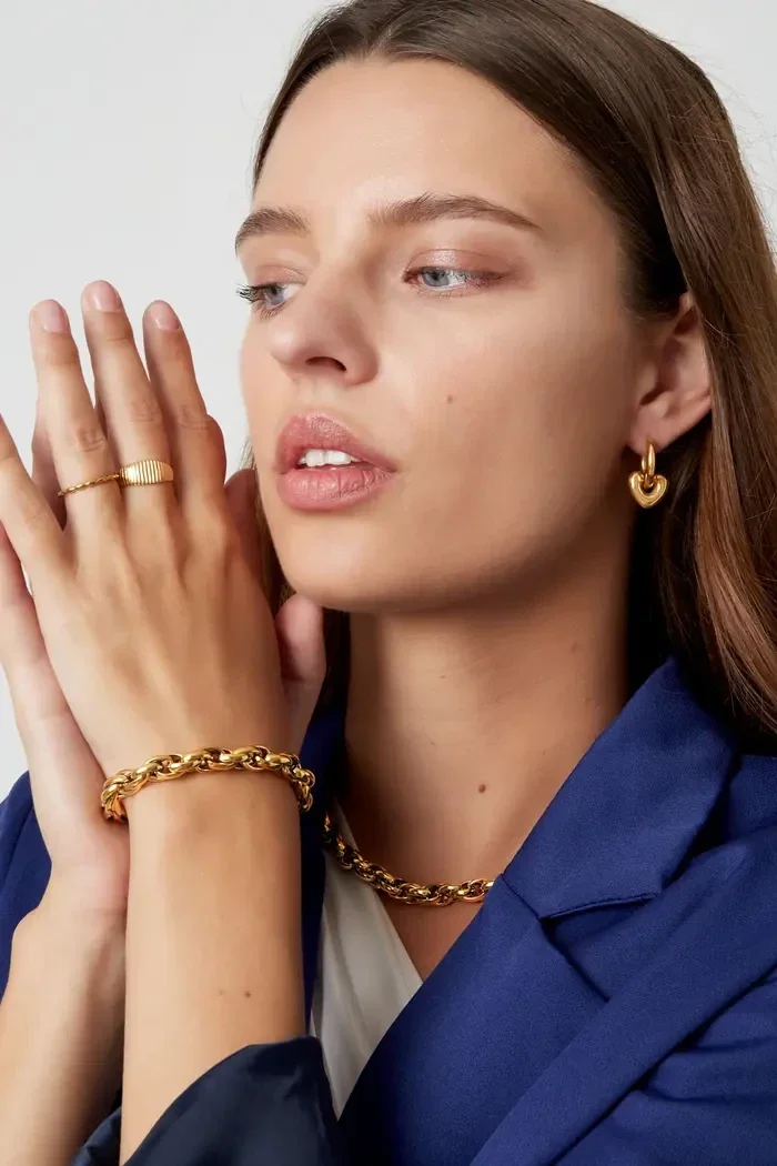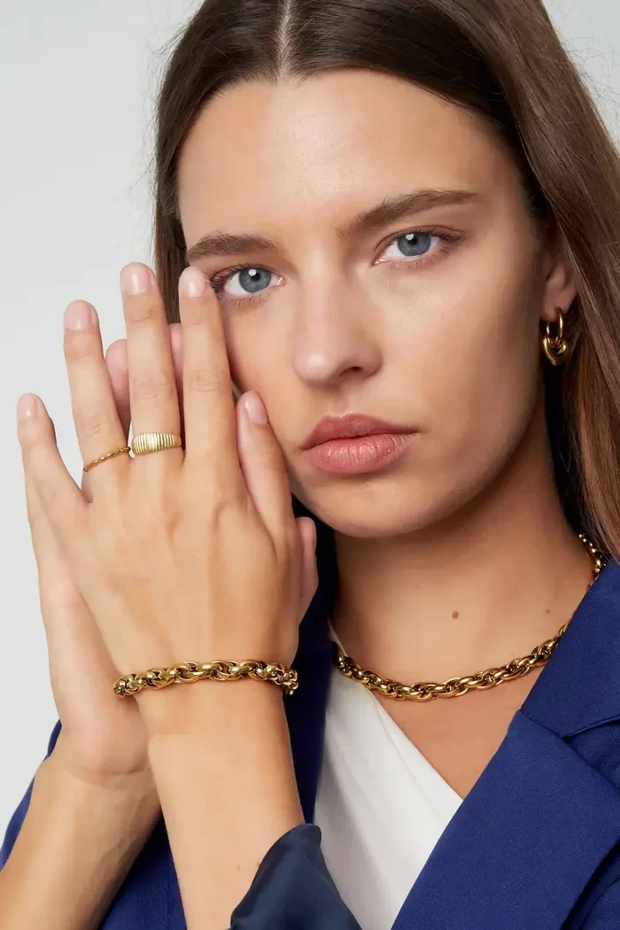 Yehwang - Schakelarmband grof - goud - Stainless Steel