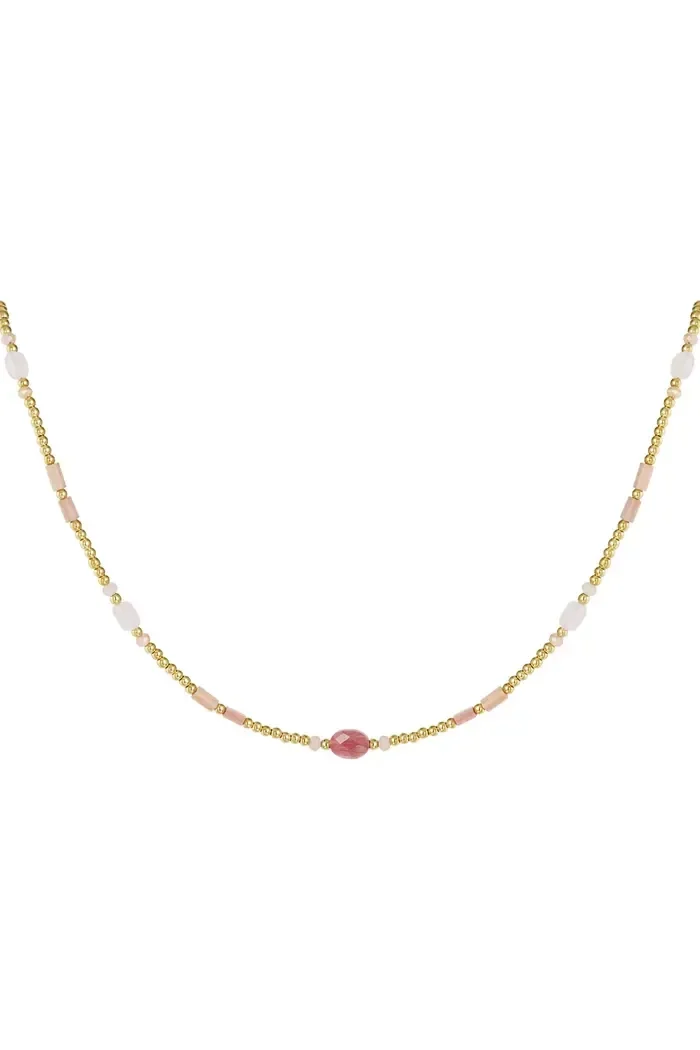 Yehwang - Kralenketting kleurrijke details - roze & goud Stainless Steel