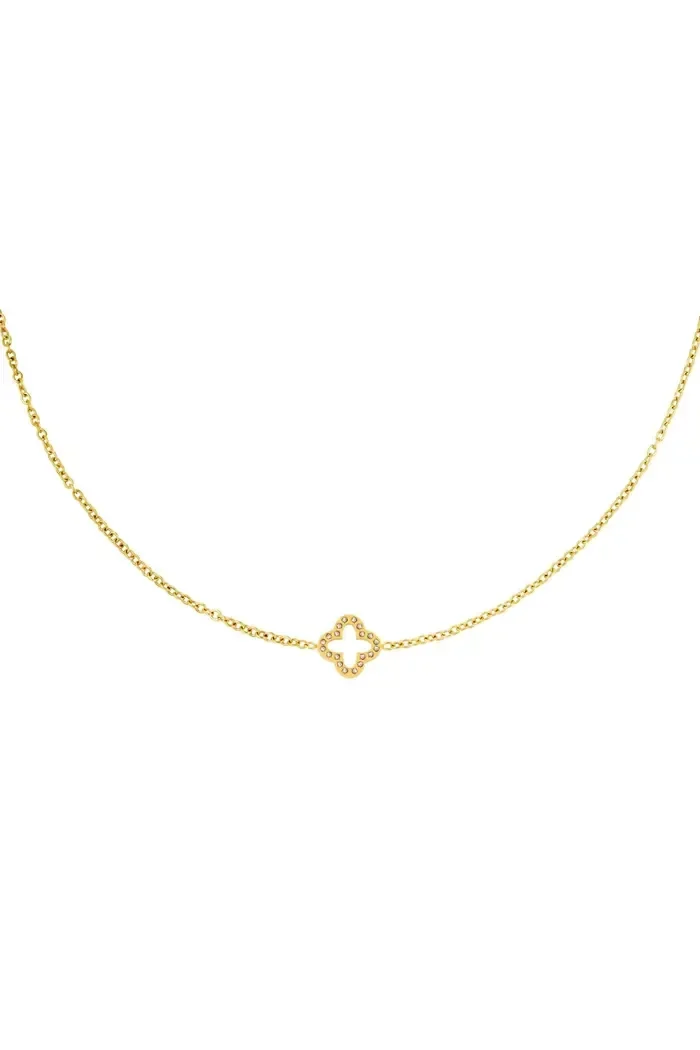 Yehwang - Ketting klaver zirkoon Goud Stainless Steel