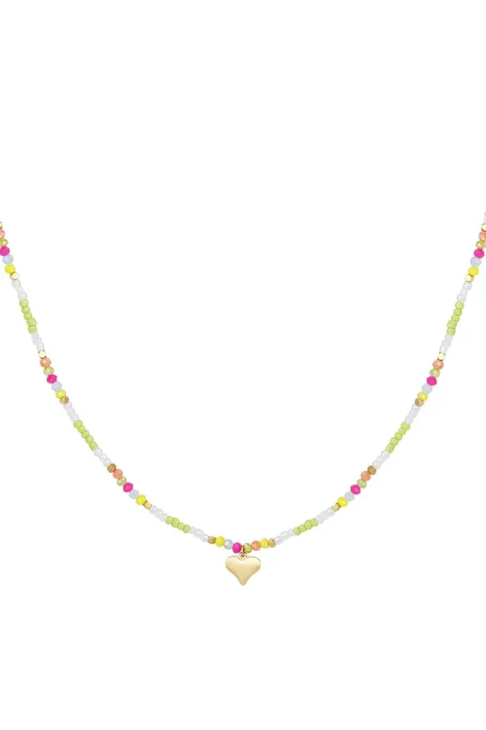 Yehwang -Kleurrijke kralenketting met hart bedel - groen/multi Glas - in 4 kleuren combinaties