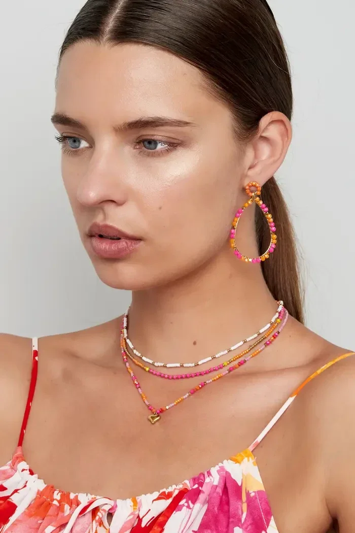 Wauw! Wat een plaatje is deze prachtige kleurrijke kralenketting. De ketting met leuke kraaltjes in de kleuren wit en goud kun je perfect combineren met allerlei gouden en zilveren sieraden en is daarnaast ook leuk te combineren met andere fel gekleurde sieraden. Zo kun je deze ketting onbeperkt combineren! De ketting is gemaakt van glaskralen, polymeerklei, hematiet en Stainless Steel. De ketting heeft een afmeting van 38 cm, verstelbaar tot en met 43 cm. Verkrijgbaar in de kleuren groen/blauw - roze/oranje - wit/goud - geel/oranje.