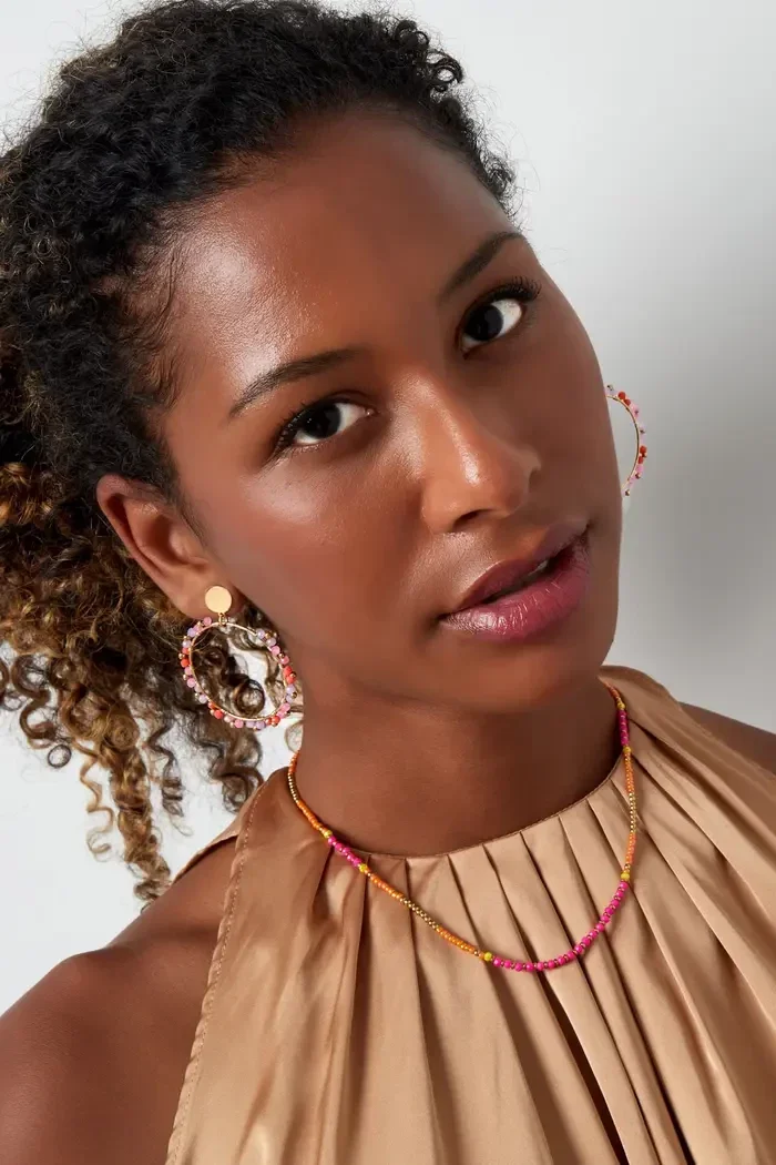 Wauw! Hoe leuk zijn deze gouden ronde statement oorbellen met gouden en witte kraaltjes! Super trendy en mega leuk te combineren met matchende sieraden en accessoires. De oorbellen zijn gemaakt van koper in combinatie met stainless steel, hematiet en kristalkraaltjes en hebben een afmeting van 5,2 cm