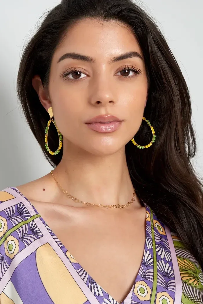 Yehwang - Oorbellen druppel kraaltjes - goud/oranje Stainless Steel