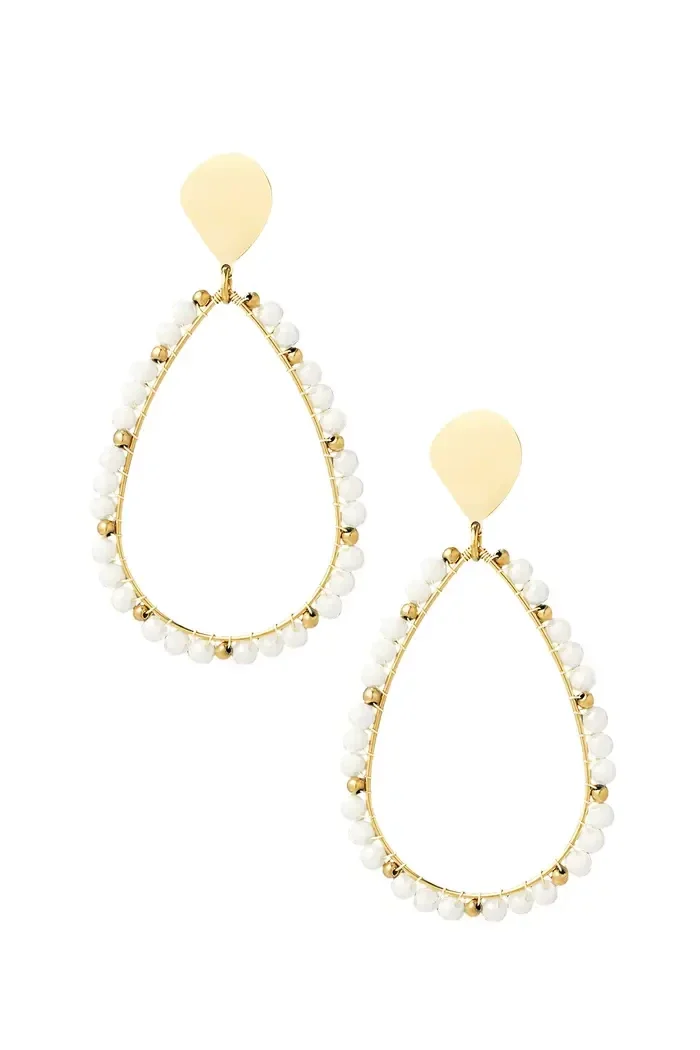 Yehwang - Oorbellen druppel kraaltjes - goud/wit Stainless Steel