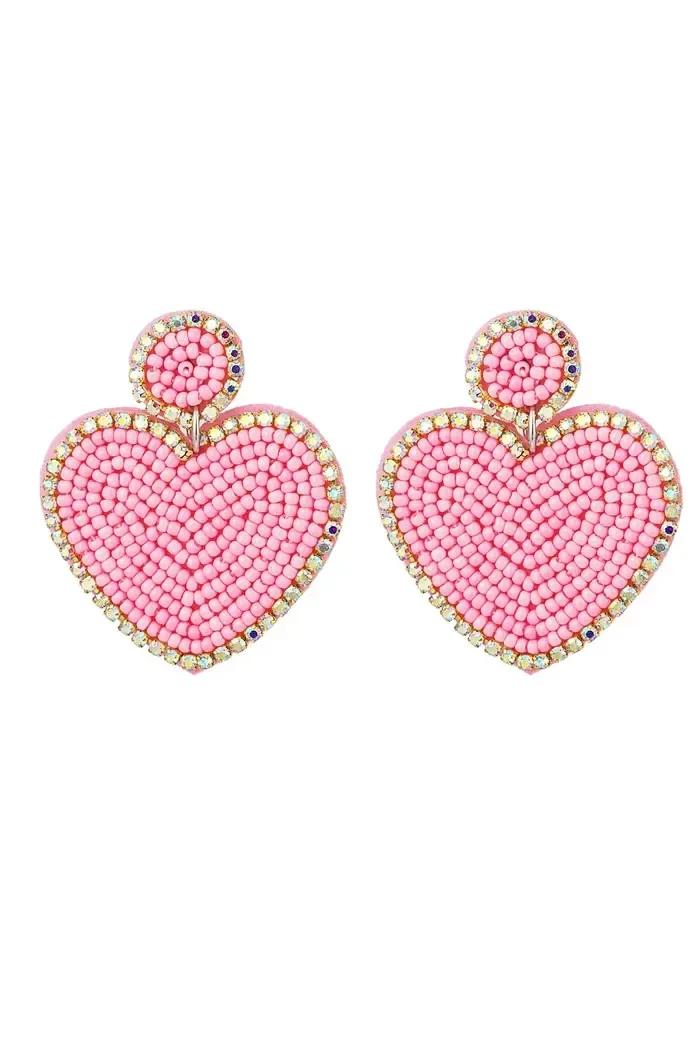 Yehwang - Oorbellen kralen hart & rondje - Glas