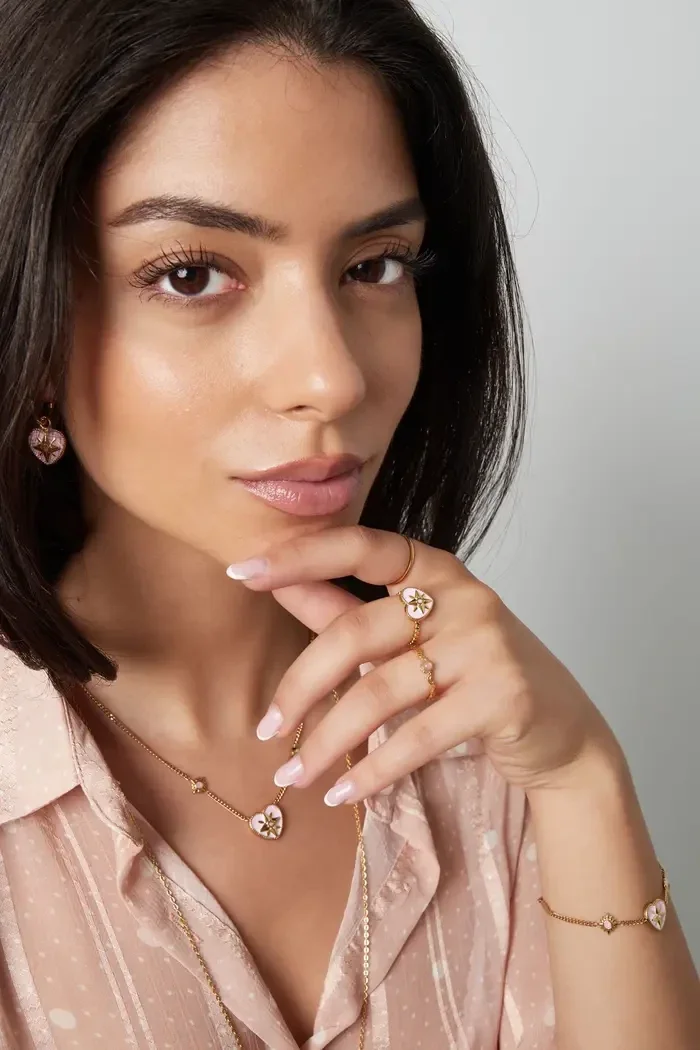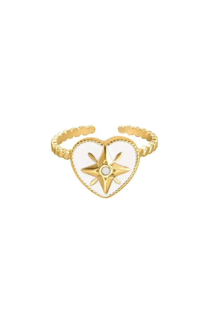 Yehwang - Ring gekleurd hart met ster enamel wit - goud Stainless Steel