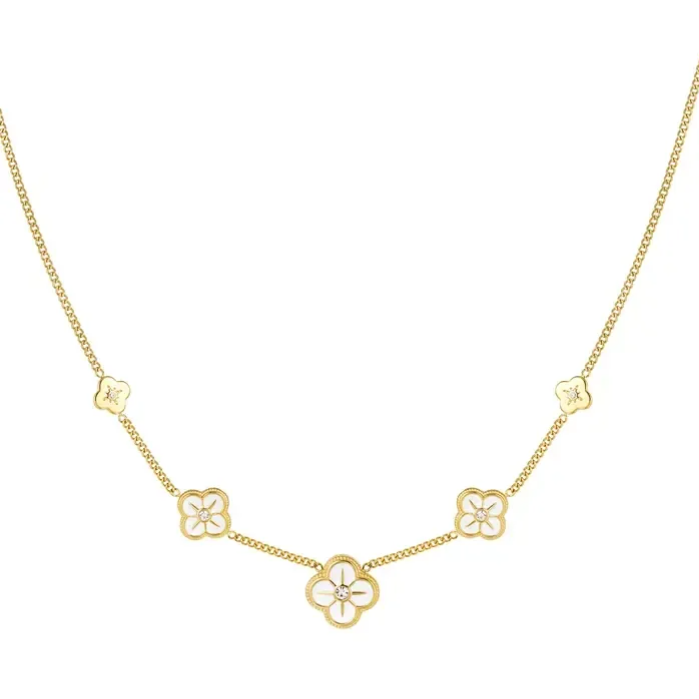 Yehwang - Ketting 5 klavers - goud en zilver Stainless Steel