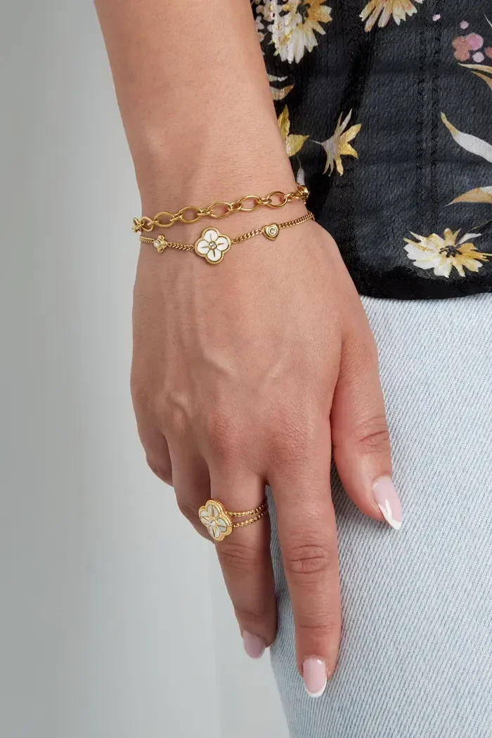 Yehwang - Armband bedels witte details klavers - goud Stainless Steel