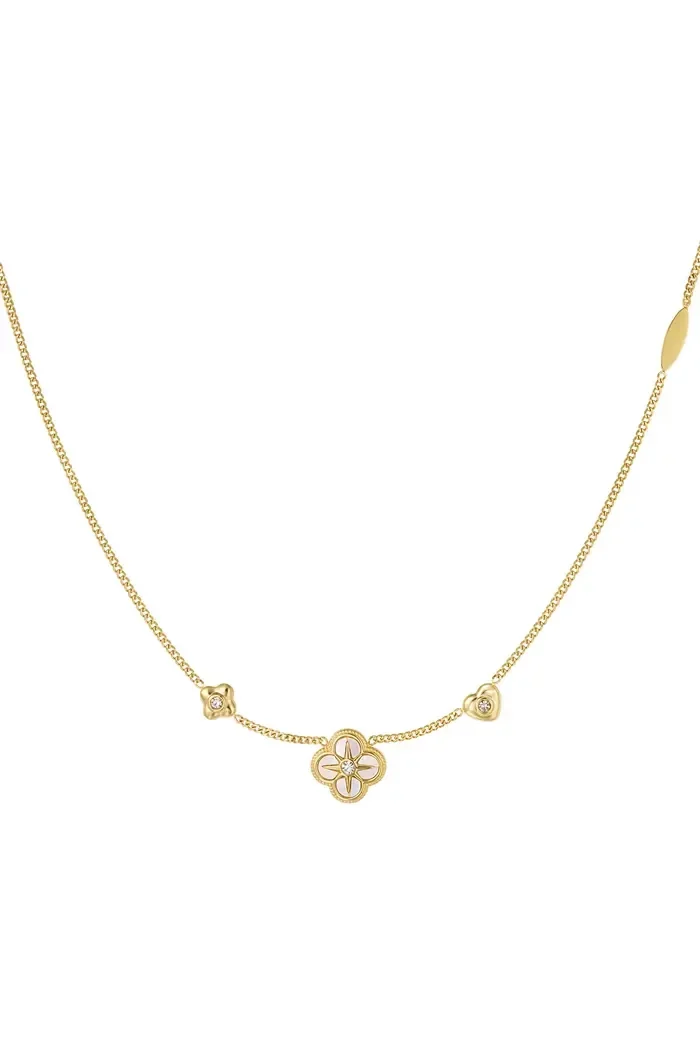 Yehwang - Ketting 3 klavers - goud Stainless Steel