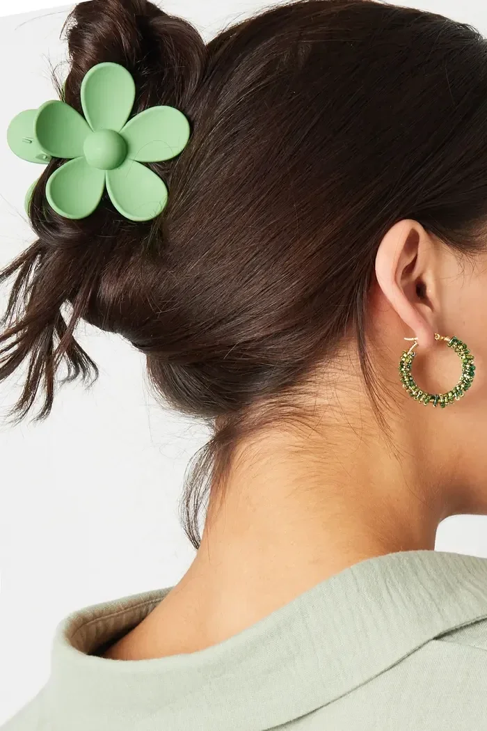 Trend alert!! Hoe leuk is deze mega trendy groene haarklem in de vorm van een bloem! Superleuk om een gedeelte van je haar op te steken met deze prachtige haarklem! Haarklem bloem is verkrijgbaar in de volgende vrolijke voorjaarskleuren: blauw - groen - fuchsia - off-white - oranje - lila - roze. De haarklem is gemaakt van resin en is een echte musthave voor het assortiment van jouw shop!