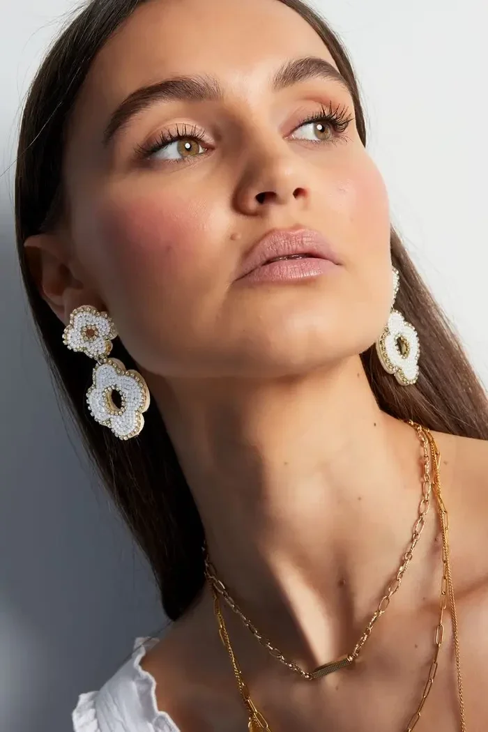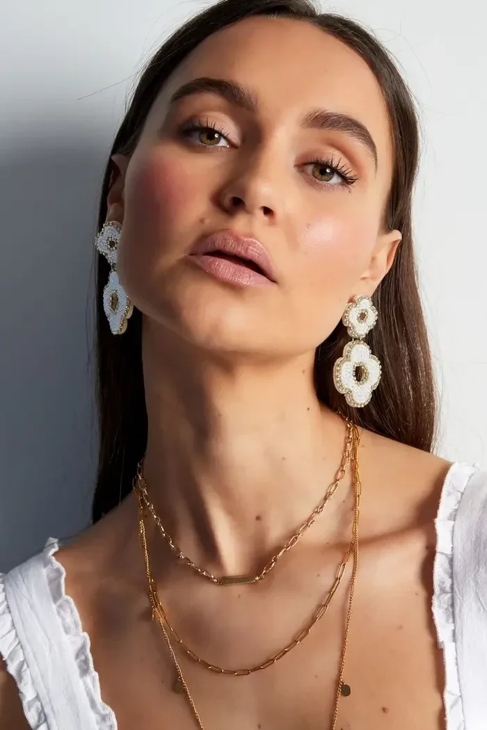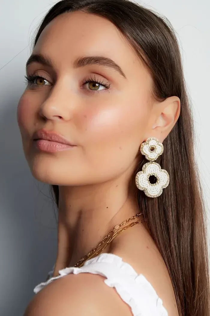 Trendalert!! Hoe leuk zijn deze oorbellen in de vorm van twee bloemen, gemaakt van kralen. Daarnaast hebben de oorbellen prachtige zilveren detail Saan de buitenkant van de oorbel. Dankzij dit prachtige paar oorbellen maak jij jouw gehele look compleet en voorzie jij jouw outfit van een echte Eye-cather! De kralenoorbellen zijn gemaakt van glaskralen, stof en Stainless Steel en hebben een afmeting van 6,5 cm. Helemaal leuk om deze oorbellen te combineren met meerdere oranje sieraden voor een complete look.