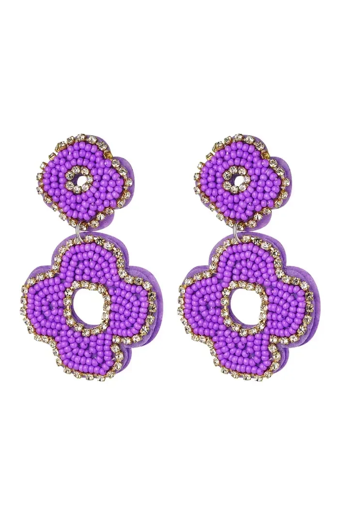 Yehwang - Oorbellen kralen dubbele bloem - Paars glas