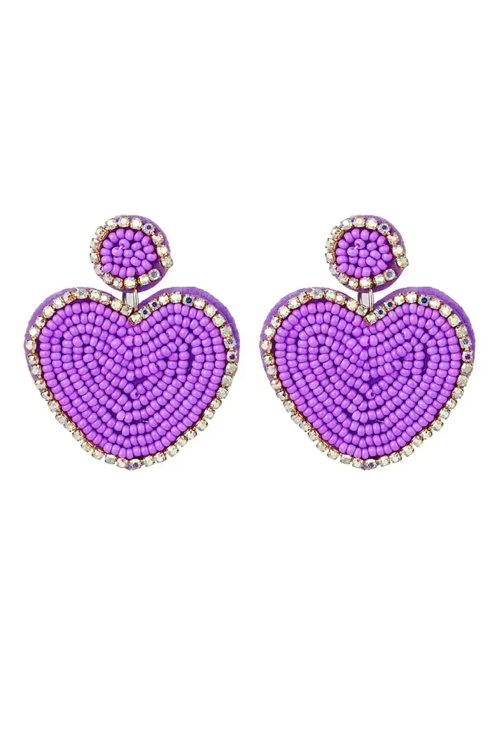 Yehwang - Oorbellen kralen hart & rondje - purple glas