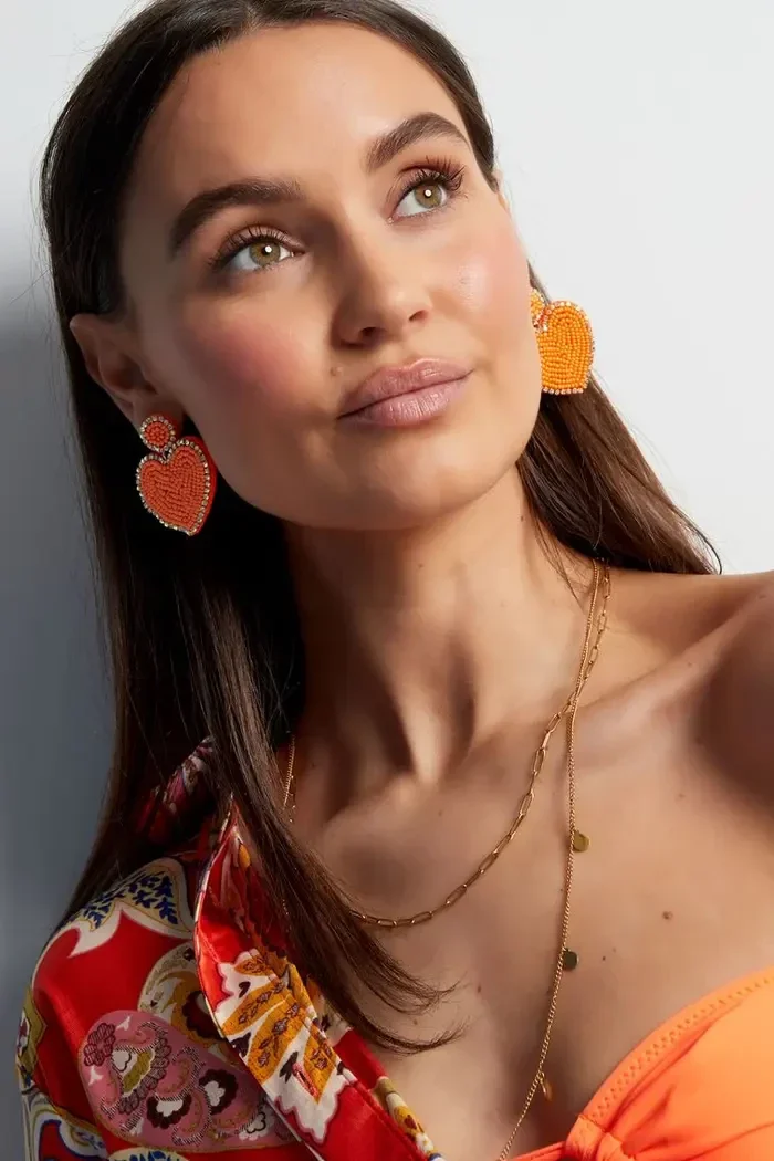 Trendalert!! Hoe leuk zijn deze lichtroze oorbellen in de vorm van een rondje en groter hartje, gemaakt van kralen. Daarnaast hebben de oorbellen prachtige multi kleurige details aan de buitenkant van de oorbel. Dankzij dit prachtige paar oorbellen maak jij jouw gehele look compleet en voorzie jij jouw outfit van een echte Eye-cather! De kralenoorbellen zijn gemaakt van glaskralen, stof en Stainless Steel en hebben een afmeting van 5 cm