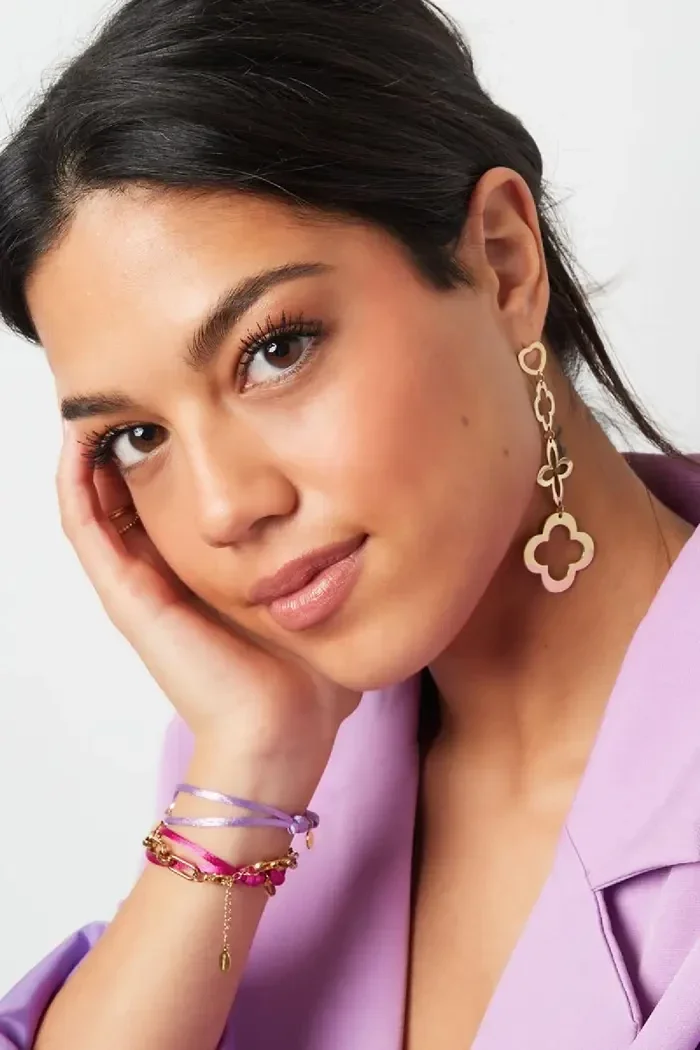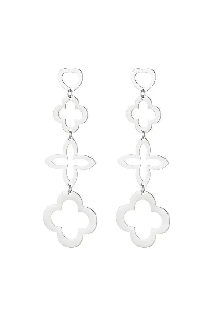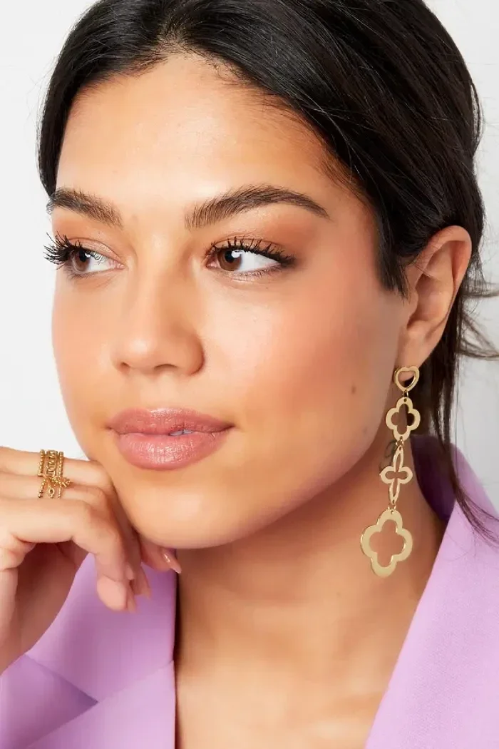 Hoe leuk zijn deze gouden statement oorbellen met drie prachtige bedels in de vorm van een hart en bloemetjes. Dankzij deze prachtige oorbellen kun jij een perfecte look creëren. Je kunt deze oorbellen bijvoorbeeld perfect dragen naar een festival of een tof feestje. Leuk om deze oorbellen te combineren met meerdere sieraden met bedels. Statement oorbellen bedeltjes zijn gemaakt van Stainless Steel en hebben een afmeting van 6,4 cm. Verkrijgbaar in het goud en zilver.