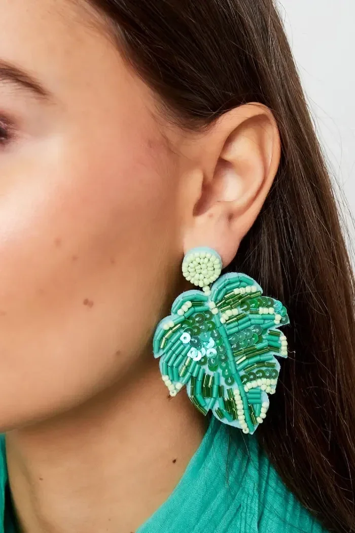 Shop deze te gekke kralenoorbellen in de vorm van een blad nu bij Yehwang! De oorbellen zijn gemaakt van glaskralen, stof en Stainless Steel en hebben een afmeting van 7,5 cm. Maak jouw outfit helemaal compleet met deze prachtige oorbellen!