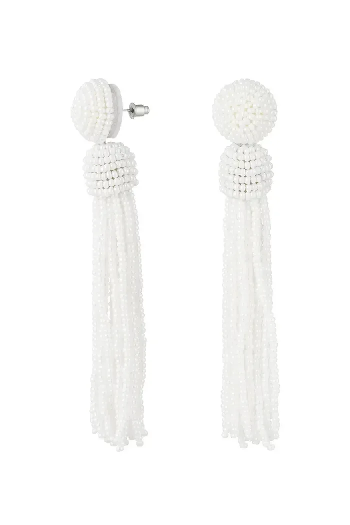 Yehwang - Oorbellen kralen kwastje - wit Glaskralen