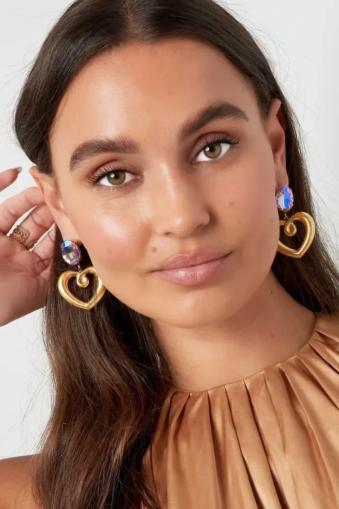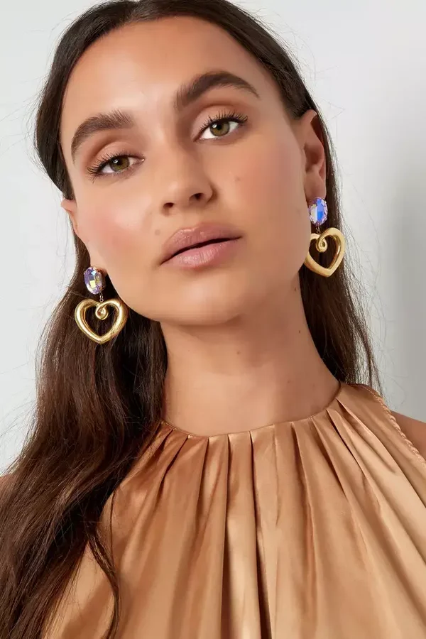 Yehwang - Oorbellen hart met glaskraal - goud Stainless Steel