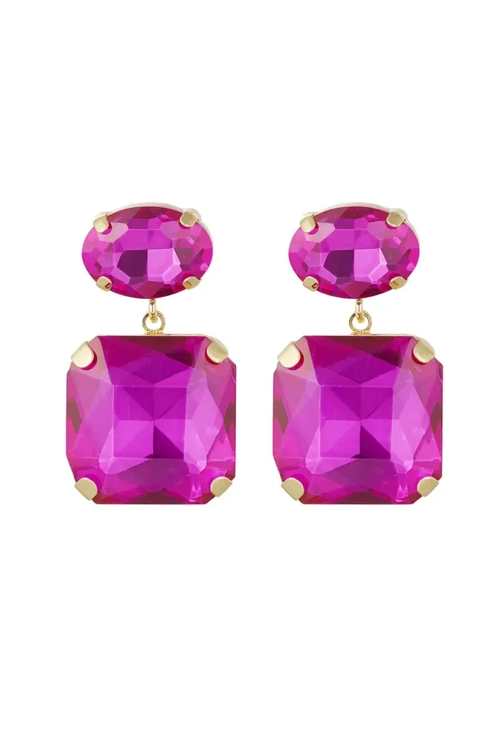 Yehwang - Oorbellen glaskralen vierkant/rond - pink