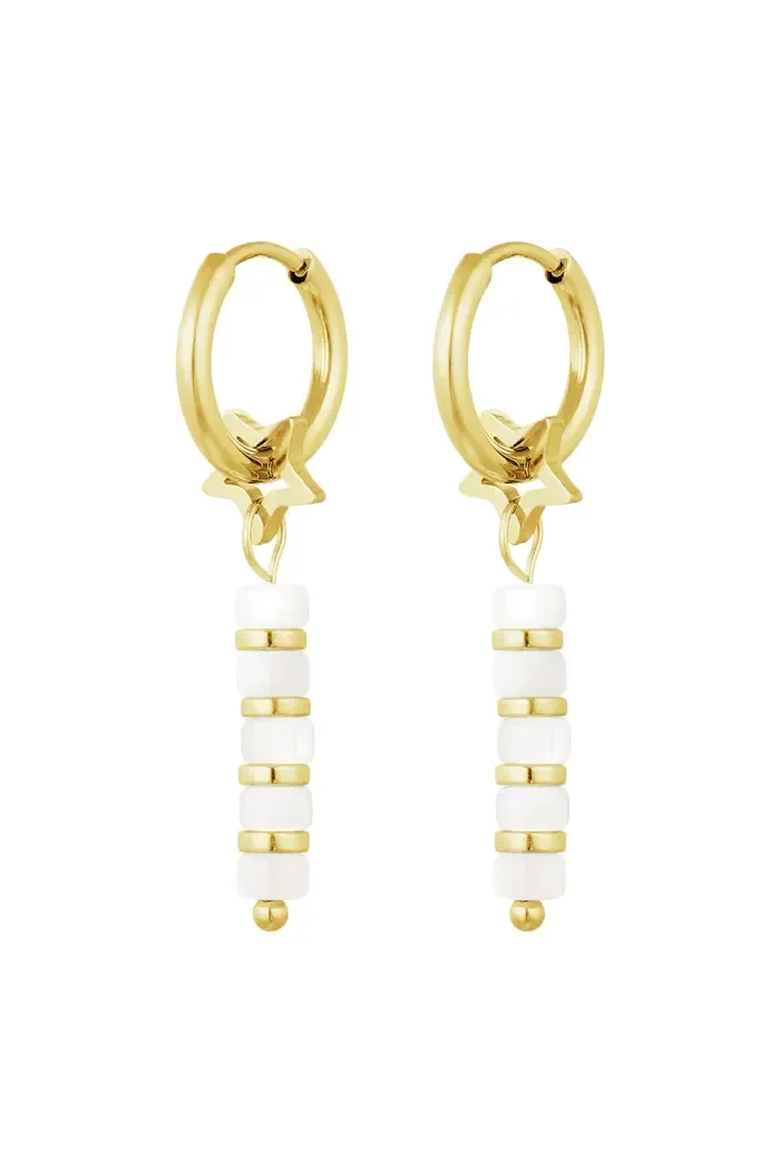 Yehwang - Oorbellen ster met kralen - goud/wit Stainless Steel