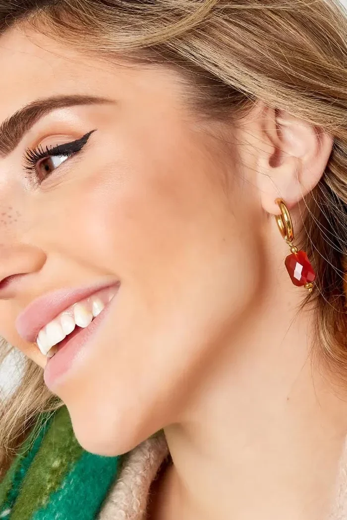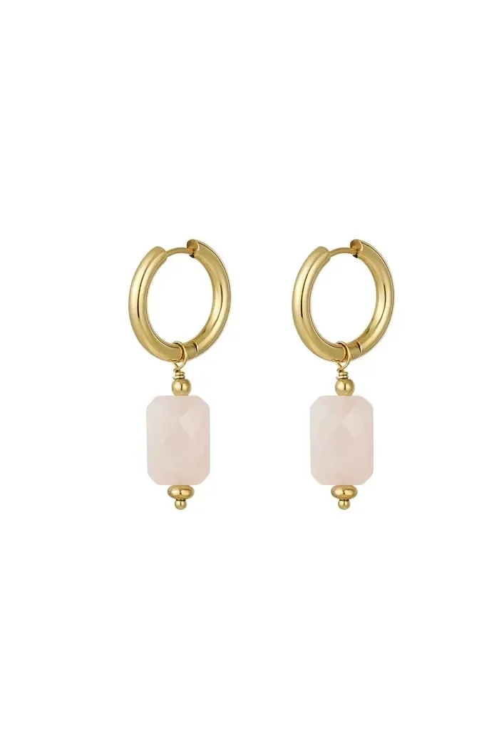 Het perfecte paar basic gouden oorbellen met roze steen voor elke sieraden stash! Wij zijn helemaal verliefd op deze basic oorbel. De oorbellen met rechthoekige hanger zijn gemaakt van stainless steel, steen en hematiet. Deze oorbellen hebben een afmeting van 4 cm