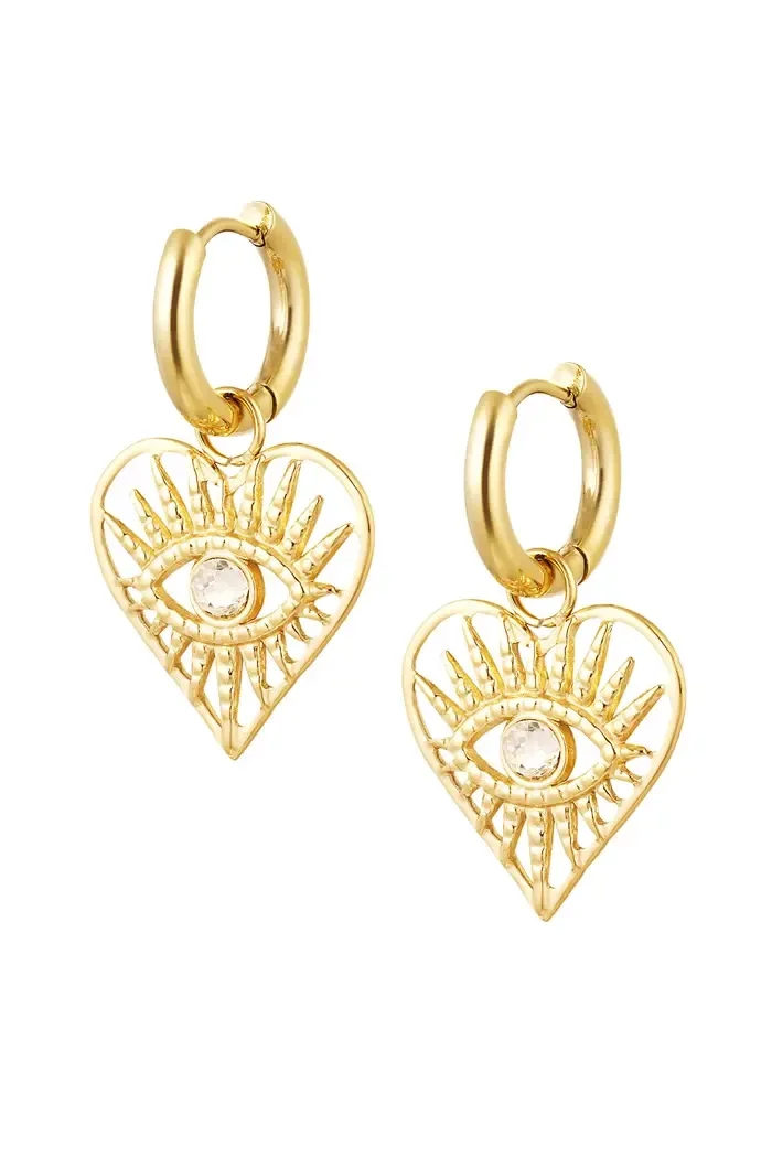 Yehwang - Oorbellen bedel hart met oog - goud Stainless Steel
