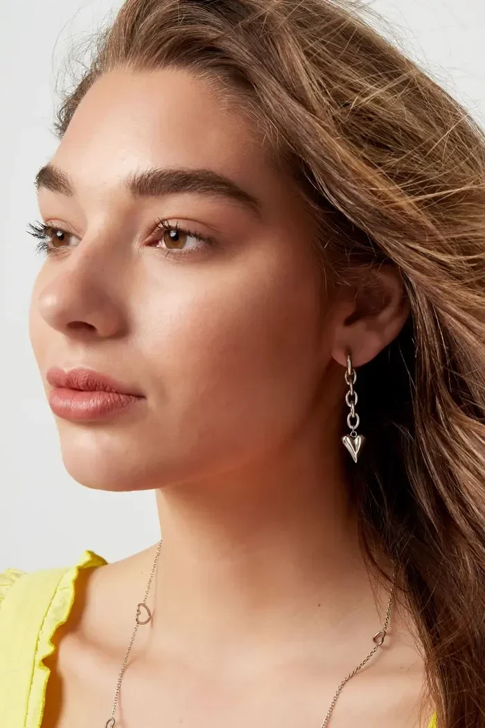 Ben jij op zoek naar leuke oorbellen om het assortiment van jouw shop aan te vullen? Bekijk dan snel deze gouden oorbellen met een leuk schakel detail en een hartje. Deze oorbellen zijn zeer geschikt voor elke gelegenheid en kunnen met elke outfit gecombineerd worden, ideaal! De oorbellen zijn gemaakt van Stainless steel en hebben een afmeting van 5,2 cm