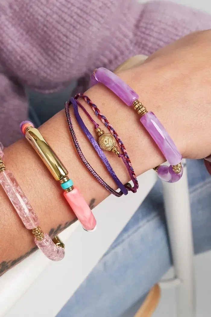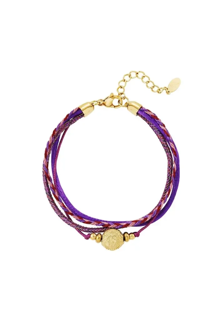 Toffe armband met paarse touwtjes en een gouden bedel. Superleuk om deze armband te combineren met meerdere gouden armbandjes voor een toffe arm party! Armband touw met bedel is gemaakt van touw, stainless steel en hematiet. De armband heeft een verstelbare sluiting waardoor je de armband kunt dragen vanaf 16 tot en met 19 cm. Je shopt deze armband in de kleuren: paars en beige. Shop deze leukerds en maak de collectie van jouw shop helemaal compleet!