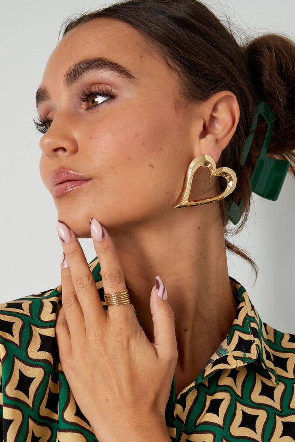 Wauw! Shop nu deze zilveren statement oorbellen in de vorm van een sierlijk hartje bij Yehwang! Mega trendy en superleuk te combineren met meerdere sieraden met hartjes details! De oorbellen zijn gemaakt van Alloy en hebben een afmeting van 5,3 cm. Verkrijgbaar in de kleuren zilver en goud.