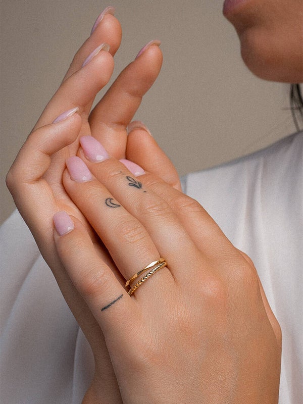Wij hebben onze ringen zo ontworpen dat ze allemaal los te dragen zijn én ze zijn uitstekend met elkaar te combineren. Dus mix & match er gerust op los! Combineer deze ring met de 9 karaat Edge ringen met edelsteen of met andere sieraden uit de Edge collectie.