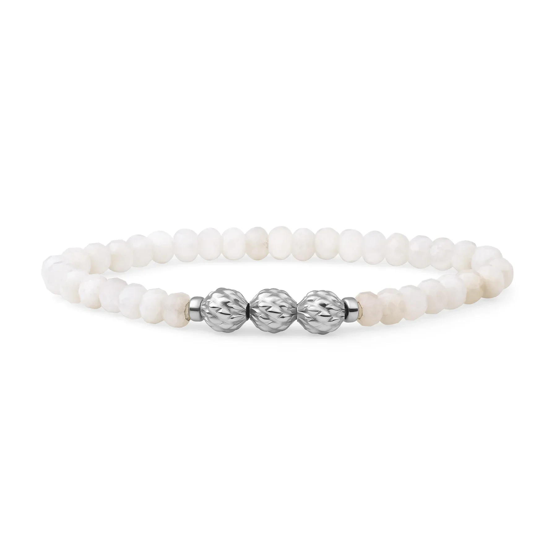 De Moonstone Fuse Beads armband is een echte eyecatcher; door de prachtige 6mm cilindervormig gefacetteerde Moonstone kralen valt deze armband extra op tussen jouw andere sieraden en daarom mag deze armband zeker niet ontbreken in jouw collectie. Deze Moonstone edelsteen armband is beschikbaar met 925 sterling zilveren kralen of 925 sterling kralen met een gold plating. De zilveren en goudkleurige kralen zijn daarnaast prachtig getekend met organische vormen. Combineer hem met onze andere sieraden uit de Moonstone Collectie of stel een mooie armbandenstack samen met onze andere kralenarmbanden!
