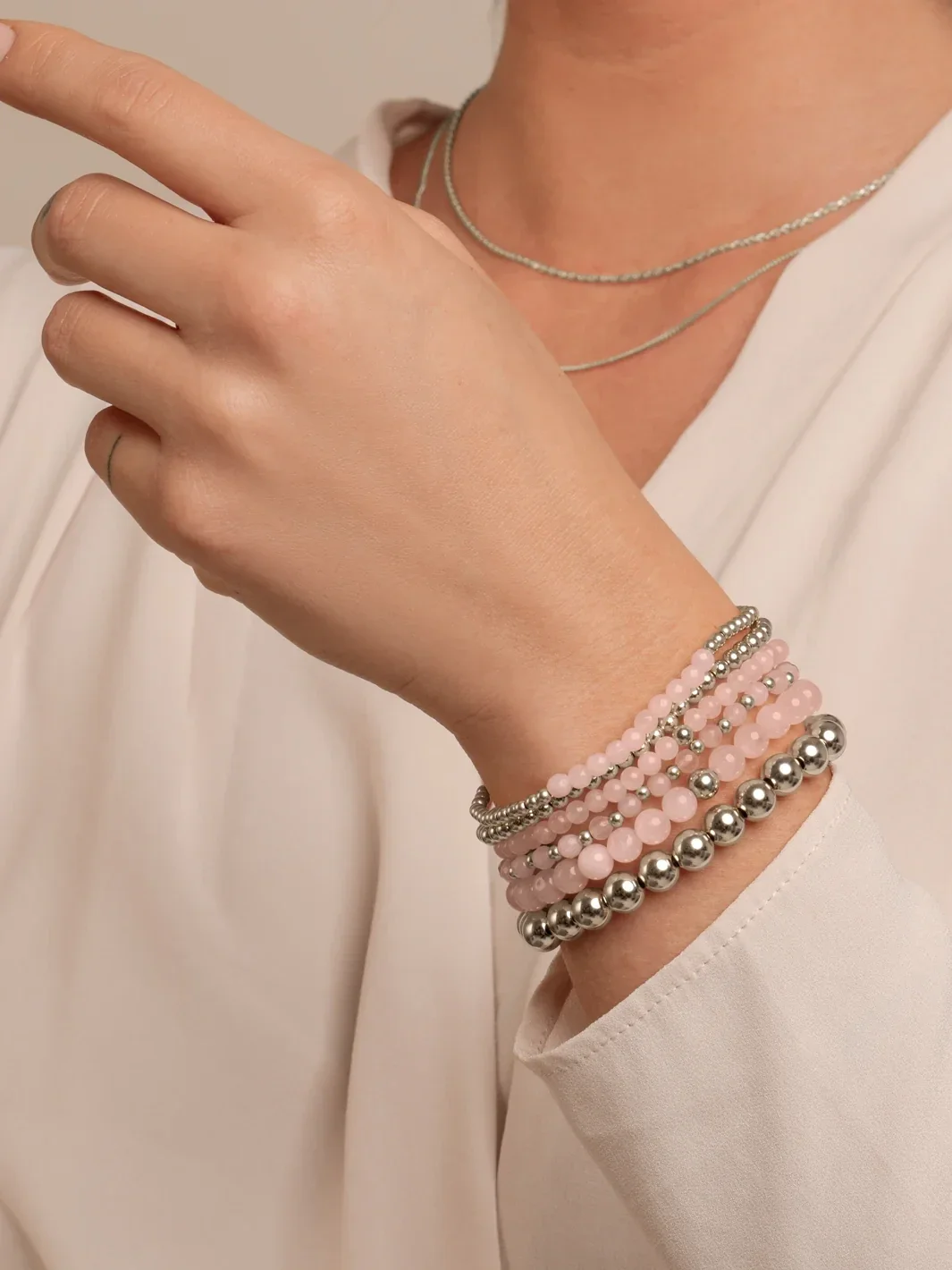 - 4mm Rozenkwarts beads met een 925 zilveren, goudkleurig of rosékleurige bead.