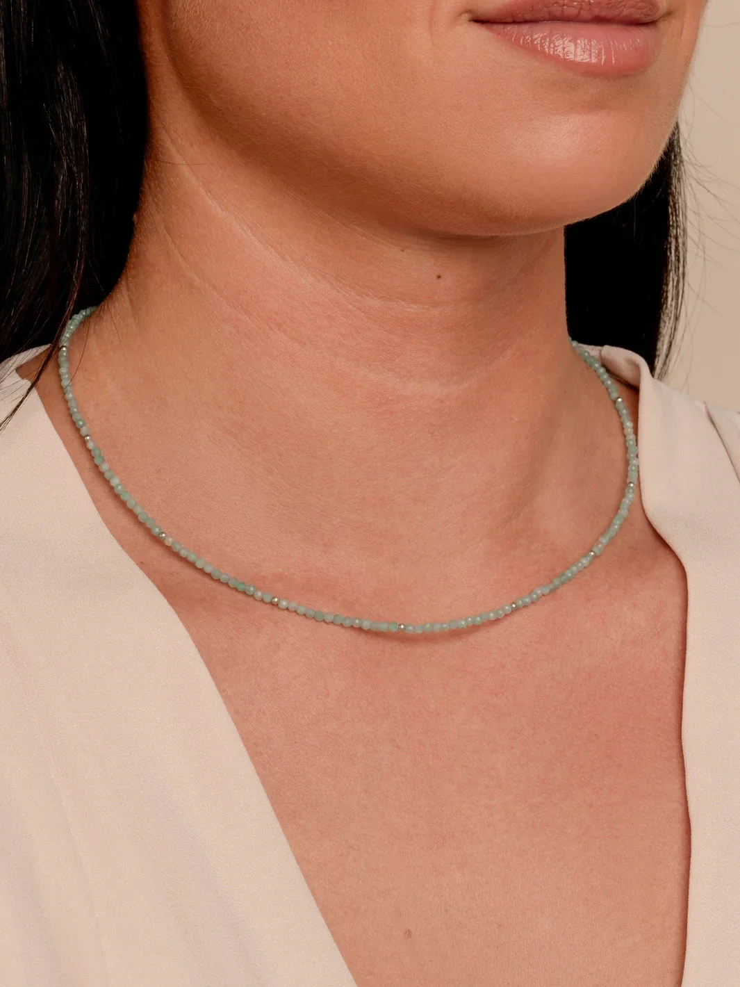 Geef je look een speelse touch door deze Rich Green Amazonite Kralenketting toe te voegen. Deze ketting is perfect om te combineren met de Essential kralenketting 2mm. Voeg er een mooie pendant aan toe en je hebt de perfect look.