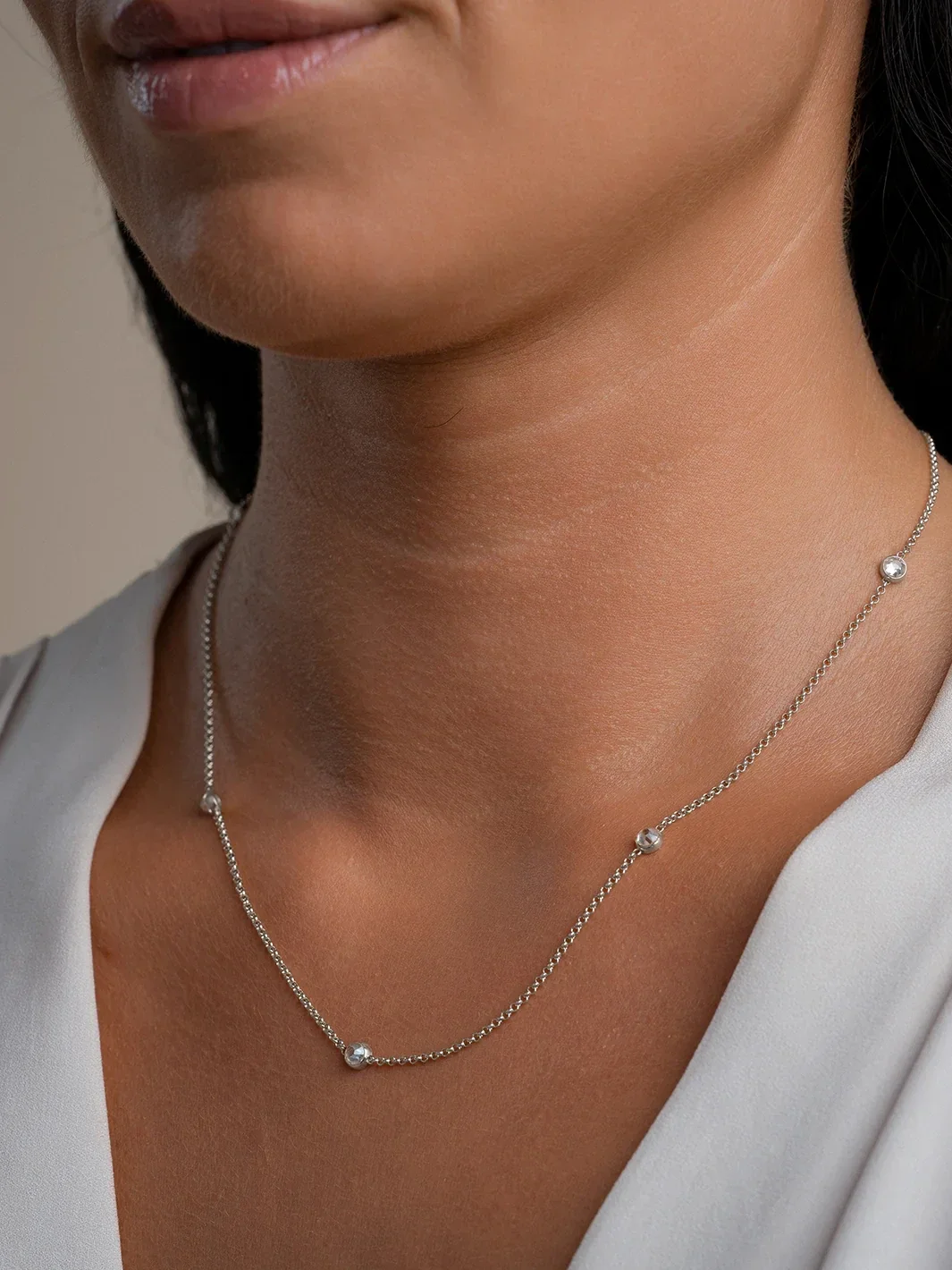 De White CZ beads chain ketting is de perfecte tijdloze Essential die jouw dagelijkse sieradenlook net dat beetje extra geeft! De ketting is gemaakt van 925 sterling zilver en ingezet met witte CZ steentjes om jouw sieraden look helemaal af te maken. Mix & Match de ketting met andere Essentials sieraden of layer ze met onze andere Essentials kettingen. Wil je graag meer weten over ons Mix & Match concept, neem dan vooral even een kijkje op onze Mix & Match pagina.