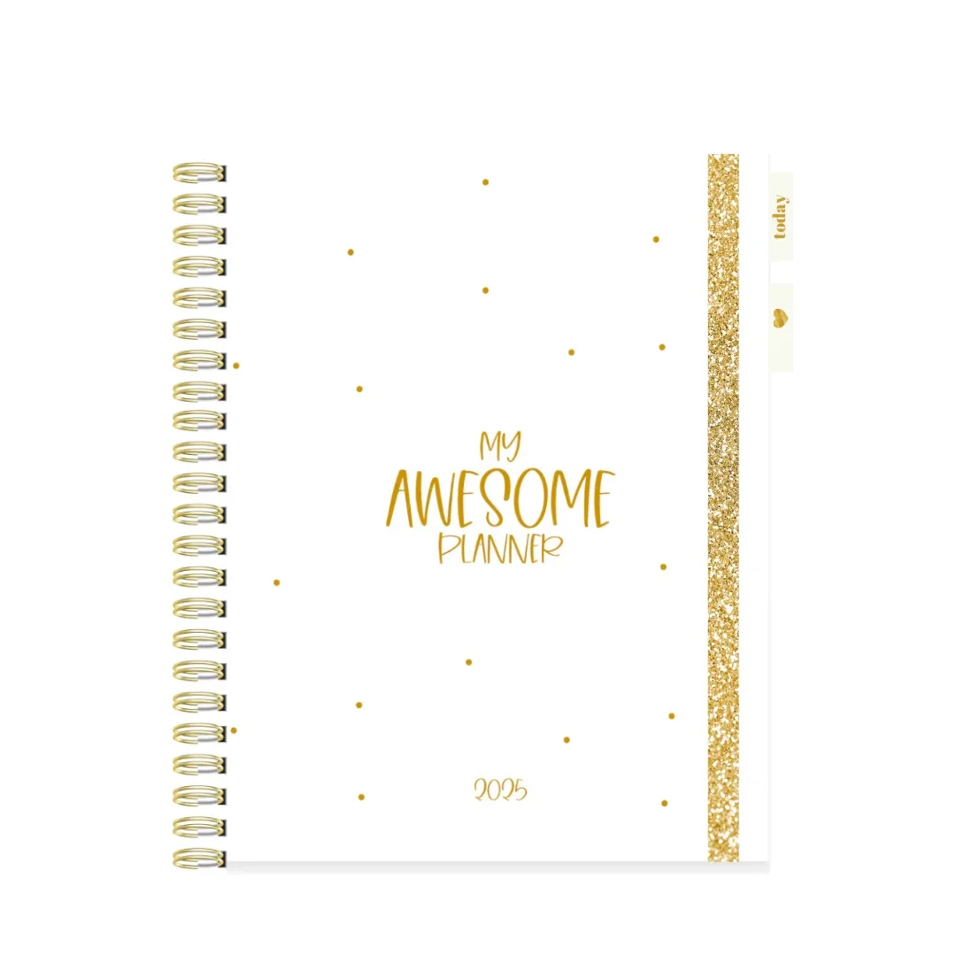 YES! Daar is onze agenda voor 2025! En hij zit boordevol toffe details en heel veel goud! We LOVE bling bling :)