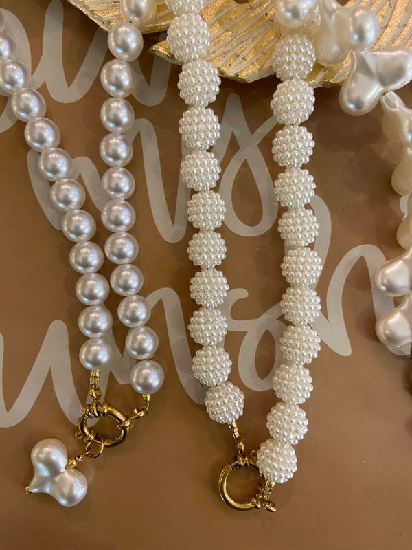 2. Fauxparel ketting met kleine bolletjes, inclusief hart, 42 cm €24,95