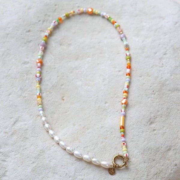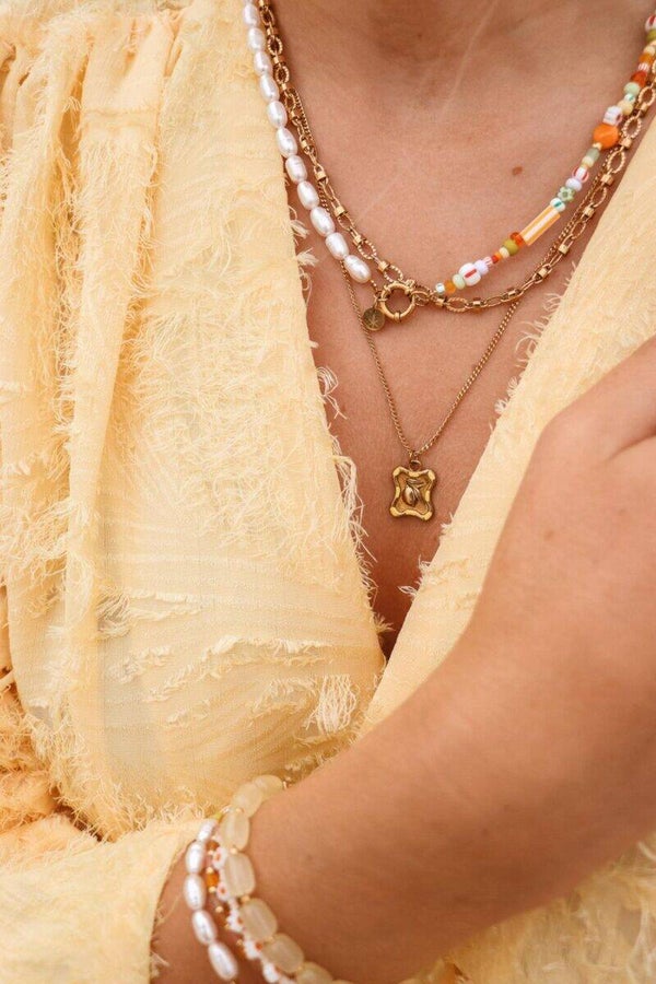 Viva la vida! 🌸🍊 Deze kleurrijke ketting is een feestje om te dragen en geeft elke outfit een speelse touch!