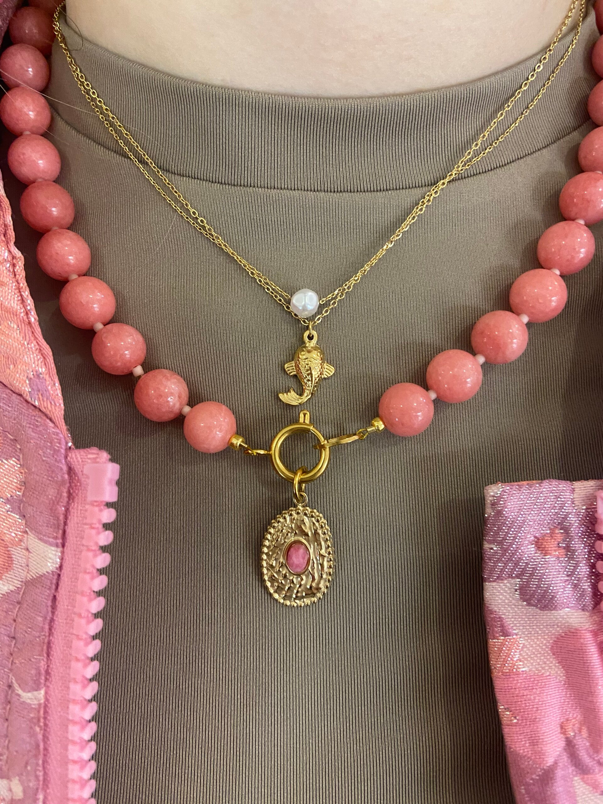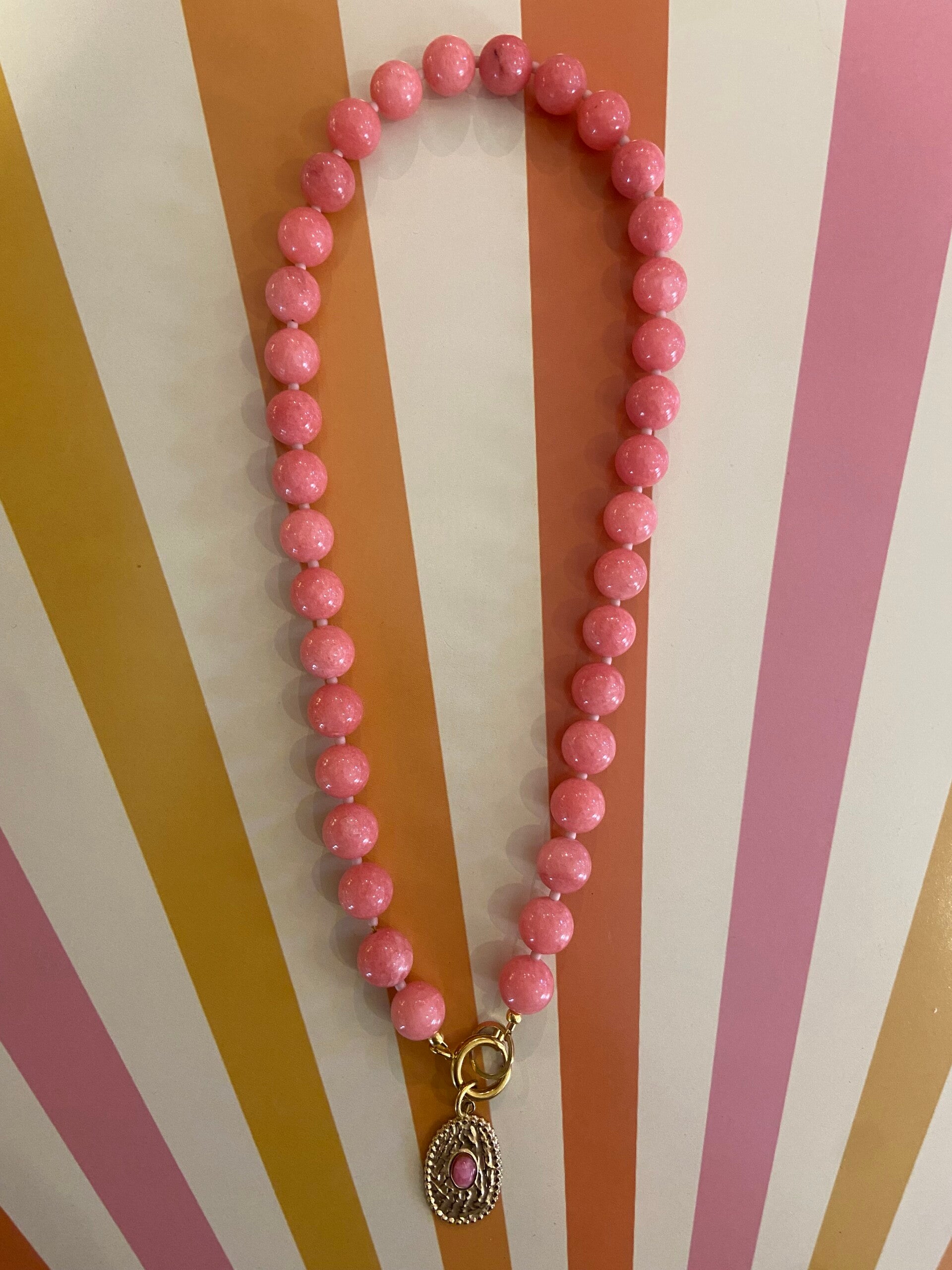 Beauty's jewelry big bold necklace 10 mm natuursteen met stainless steel slotje.