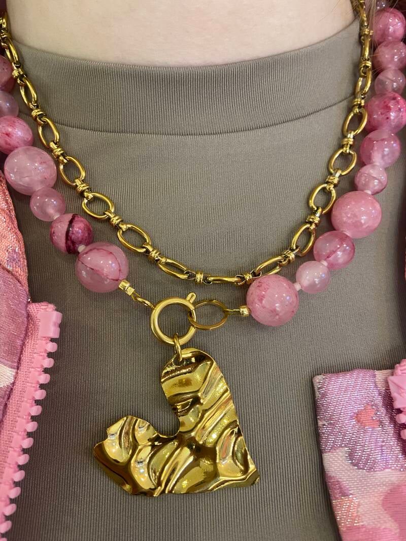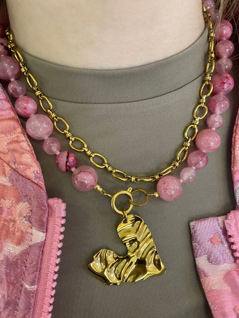 Beauty's jewelry big bold necklace 8, 10 en 12 mm natuursteen met stainless steel slotje.