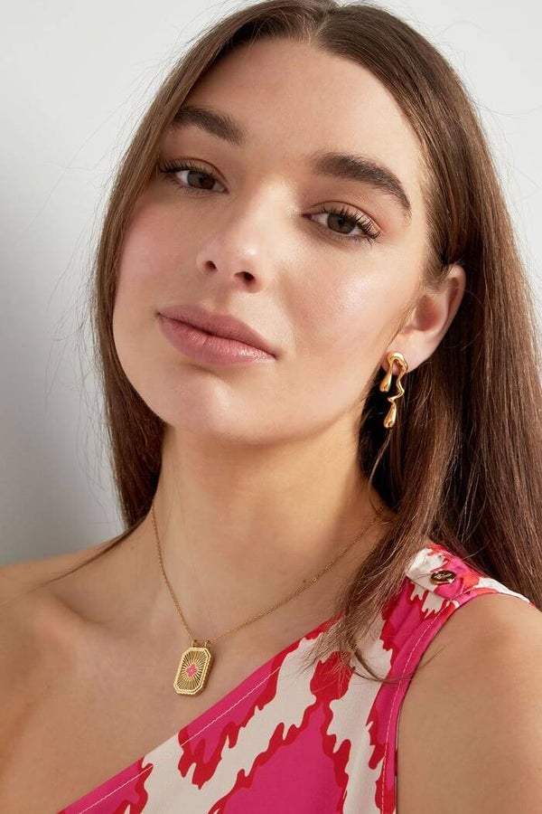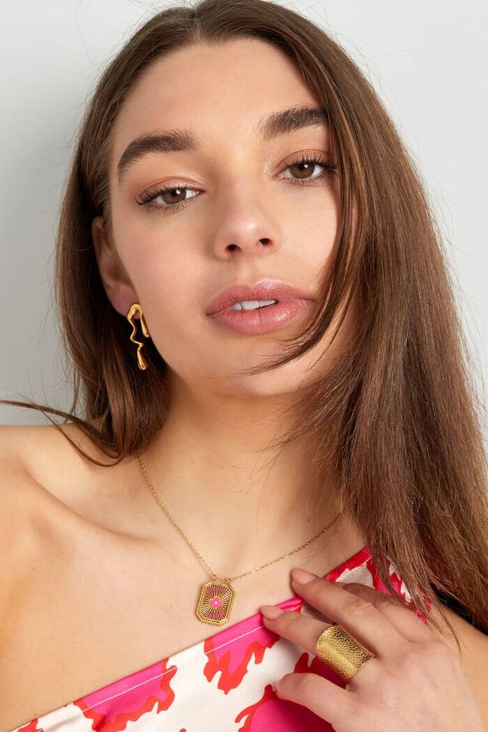 Stainless steel - Ketting gekleurde bloem bedel - rose kleur