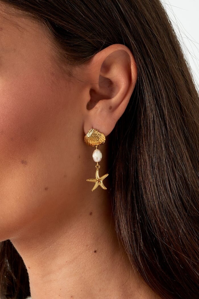 - Oorbellen met schelp, parel en zeester;