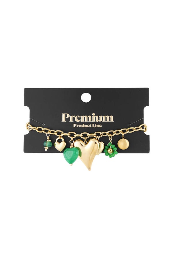 Stainless steel - Bedelarmband charm & chill - Groen & goud kleur