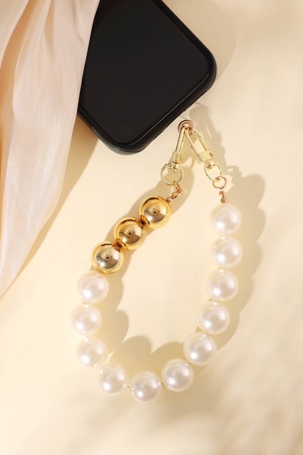 Telefoonkoord parels - wit goudkleur