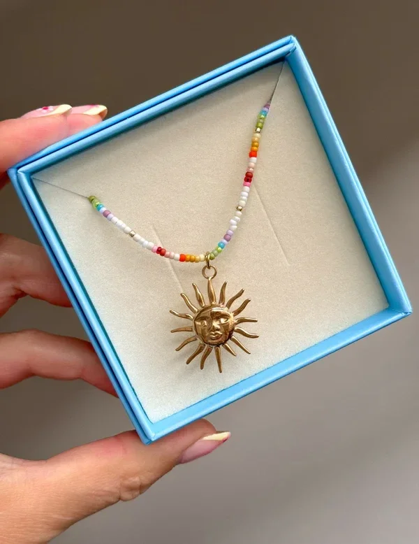 Made with delicate pastel hues and tiny beads, our Sunbeam Necklace is ready for sun-soaked beach-days. Compares perfectly with our Lilo Necklace.
